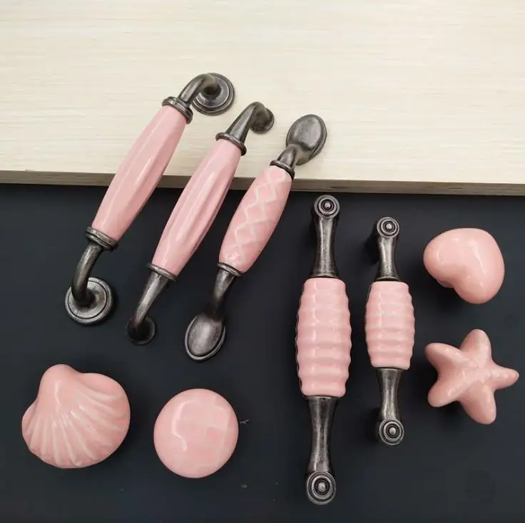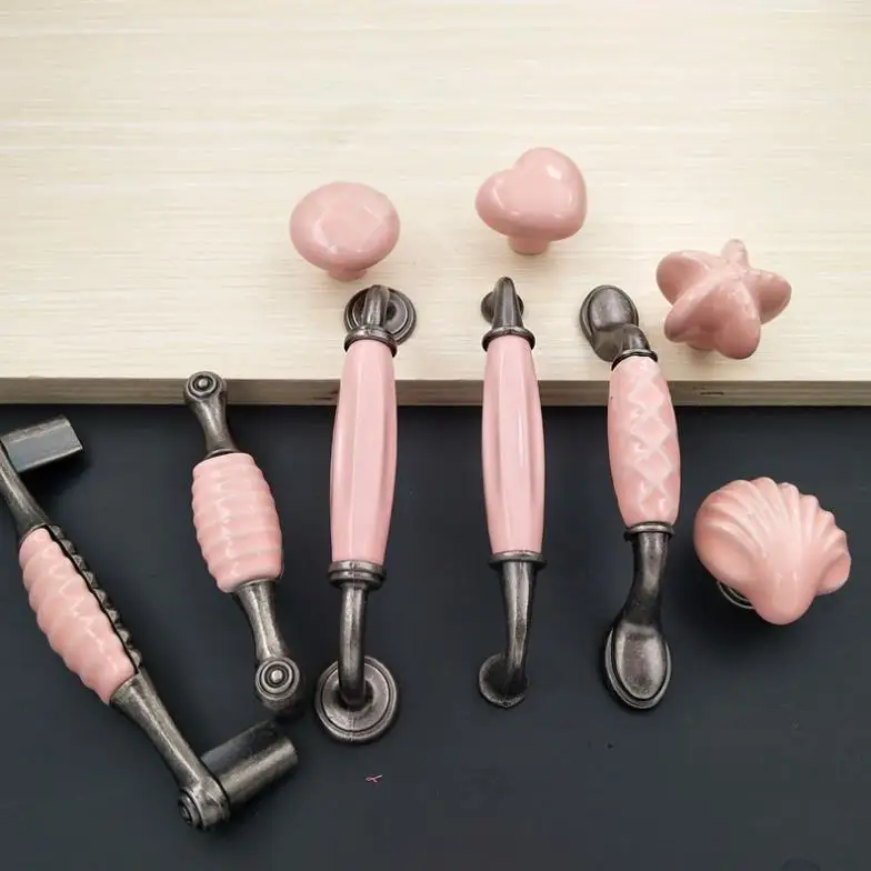 LCH Mediterranean Style Pink 76MM 96MM 128MM Garden European Style Pink CERAMIC HANDLES Porcelain D